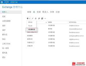 1、进入到EAC,依次打开收件人,组,点击动态通讯组