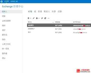 1、打开EAC管理中心,收件人,邮箱,显示有一个自动生成的管理员邮箱(另外的两个邮箱是我后面手动添加进去的)