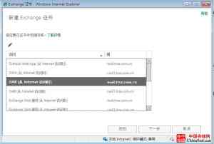6.为列表中显示的每个服务指定用户将用来连接到 Exchange 服务器的外部或内部服务器名称。外部访问域已经全部自动更改为了mail.yourdomainame.com(你的外部域名比如chinastor.cn),具体步骤请参考Exchange 2013部署系列之配置邮件流和客户端访问相关文章