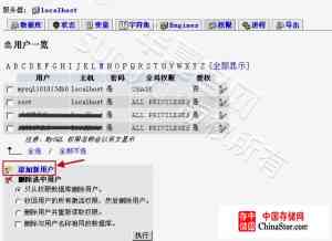 8、完成数据库及数据库用户名和密码的创建下面选择数据库,对新开通的数据赋权限。如下图所示:
