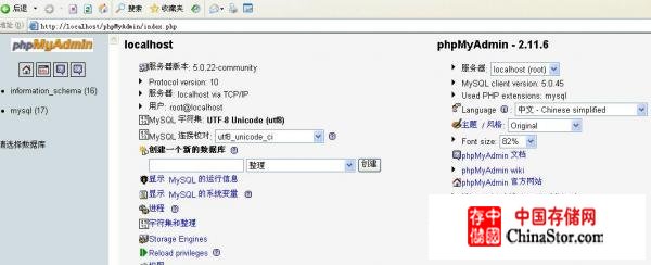 保存以后,如果能够用浏览器打开下面的页面,就可以使用phpmyadmin管理mysql了。