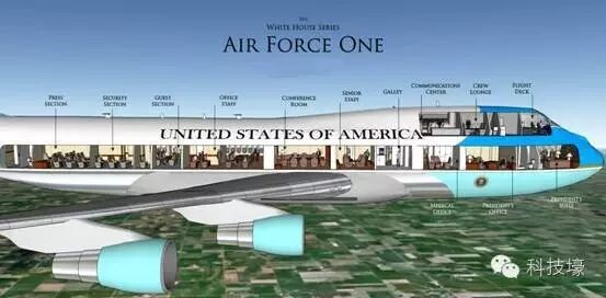 空军一号以高科技著称,它拥有85部机载电话,具有空对空、空对地无线电通信设备,复印机、计算机网络及19部视频装置。