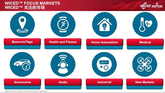 最后特别要提到的是博通针对中小企业用户推出的WICED系统平台。据称,这对物联网创新企业产生了重要的影响。除了嵌入式Wi-Fi外,Bluetooth Smart技术的应用也正在迅速增长,并快速成为许多由电池供电的小型可穿戴设备的核心技术。Sid表示,随着Bluetooth Smart Ready的推出将扩大新型WICED Smart芯片在可穿戴设备上的应用范围。