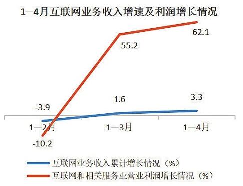 日前,工业和信息化部发布2023年1-4月互联网和相关服务业运行情况。数据显示,1-4月,互联网业务收入增速逐步回升,利润总额高速增长。