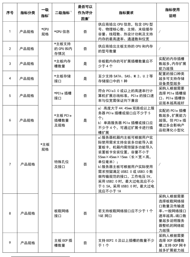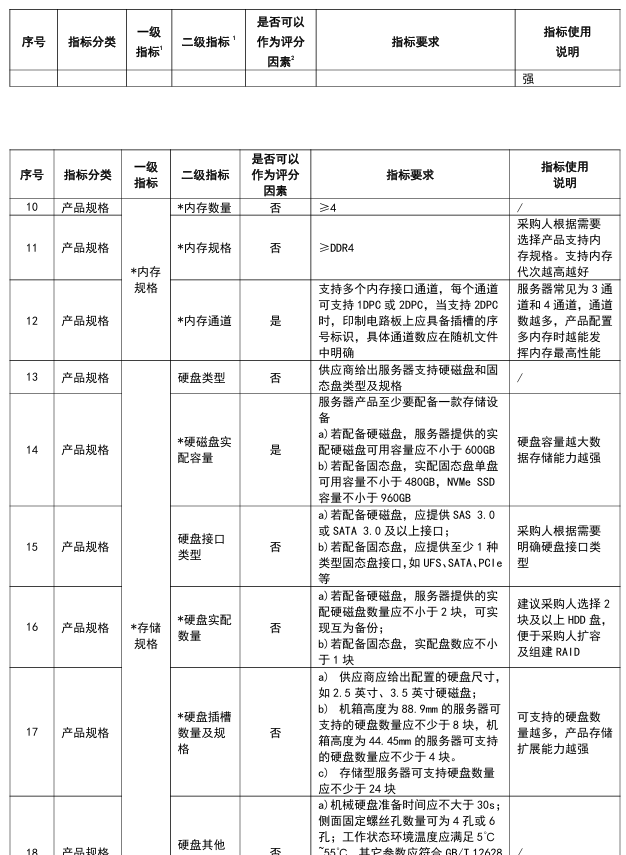 采购人应当将《需求标准》中加“*”的指标纳入采购需求,并作为采购文件中的实质性要求。其中,乡镇以上党政机关,以及乡镇以上党委和政府直属事业单位及部门所属为机关提供支持保障的事业单位在采购通用服务器时,应当将CPU、操作系统符合安全可靠测评要求纳入采购需求,其他单位可不在采购需求中提出此项要求。对于未加“*”的指标,采购人可以根据实际需要自行确定是否纳入采购需求。