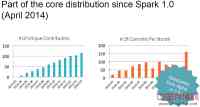 Spark SQL是Spark的核心组件之一,于2014年4月随Spark 1.0版一同面世。上图左侧展示了自去年4月份Spark 1.0发布至今开源贡献者数量的增长情况,基本上呈现了一个线性增长的态势。右侧所展示的每月PR数量的增长情况也同样迅猛。值得一提的是,在Spark 1.3当中,Spark SQL终于从alpha阶段毕业,除了部分developer API以外,所有的公共API都已经稳定,可以放心使用了。