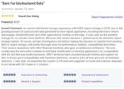 平台邀请最终用户为他们采用的供应商就“推荐意愿”“产品能力”“评估与签约”“集成与部署”“服务与支持”等项目进行打分,最终XSKY在各项的评分均高于市场平均分。