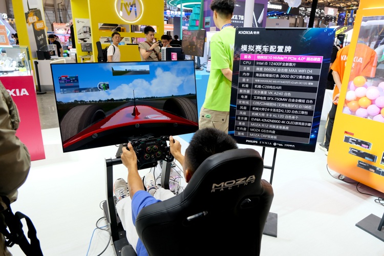 展台上铠侠还带来的EXCERIA PRO极至超速SE10,这是一款针对游戏而生的固态硬盘,它采用了日本原厂核心技术和高品质闪存颗粒,经过严格的生产管控和品质筛选,带来稳定可靠的品质表现。它采用了BiCS FLASH 3D闪存,支持PCleGen4x4通道和NVMe 1.4技术,进一步提升电脑的性能,带来全面高速的使用体验,为玩家提供更为出色的游戏体验。顺序读取速度最高可达7300MB/s,最高顺序写入速度也能达到6400MB/s,无论你是游戏,还是视频剪辑、图形渲染,都能显著的提升速度。在CJ展台上,它被安装到索尼PS5游戏主机、水冷游戏主机、赛车体验区当中,让现场观众能体验畅快的游戏体验。