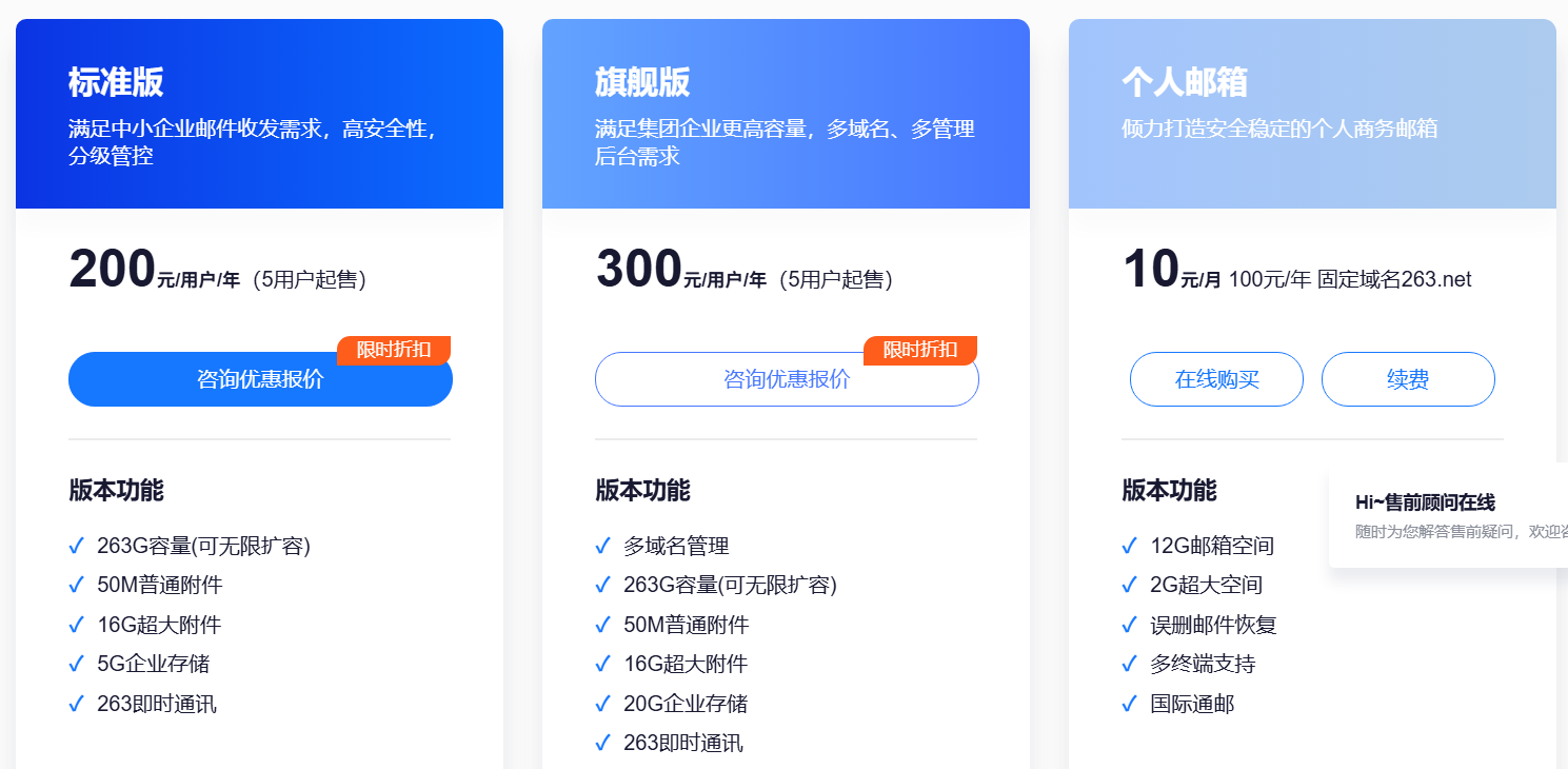 263企业邮箱是国内比较老牌的邮箱提供商,同类竞品有腾讯企业邮箱、阿里邮箱等。
