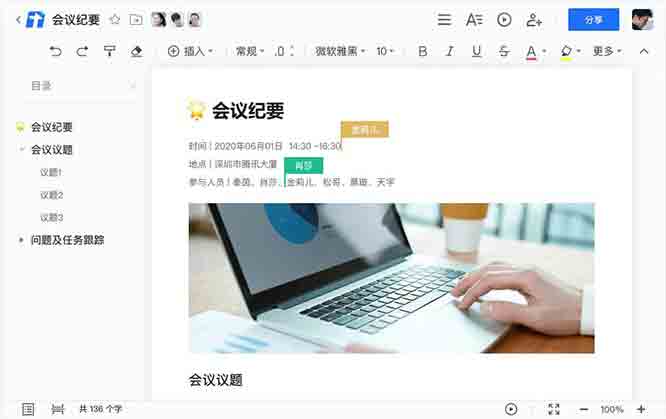 腾讯文档是腾讯公司旗下可多人同时编辑的在线文档系统。提供完善的编辑能力,轻松设置文字样式和段落格式,添加图片、链接和表格等,可快速导入导出word文档,便捷追溯历史版本,随时随地与他人协作,轻松制作生动的文档。