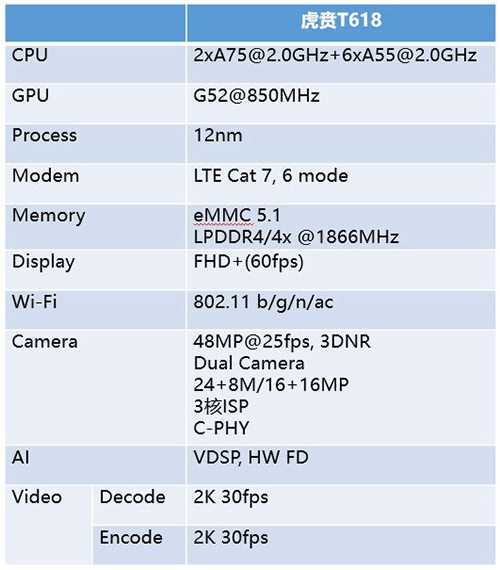 紫光展锐2019年8月发布的4G移动平台虎贲T618,8核架构,集成了视觉信息处理器(以下简称VDSP),将更好的满足高要求的边缘视觉和AI处理需求。