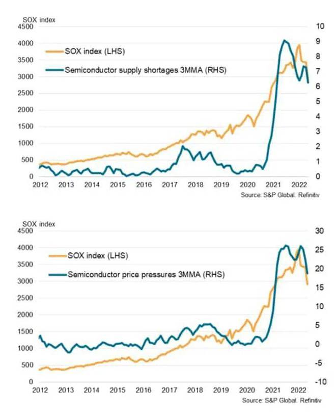 5月份的新数据证实了这种趋势,半导体价格压力和供应短缺指数在5月份均下跌至2021年初以来的最低水平。